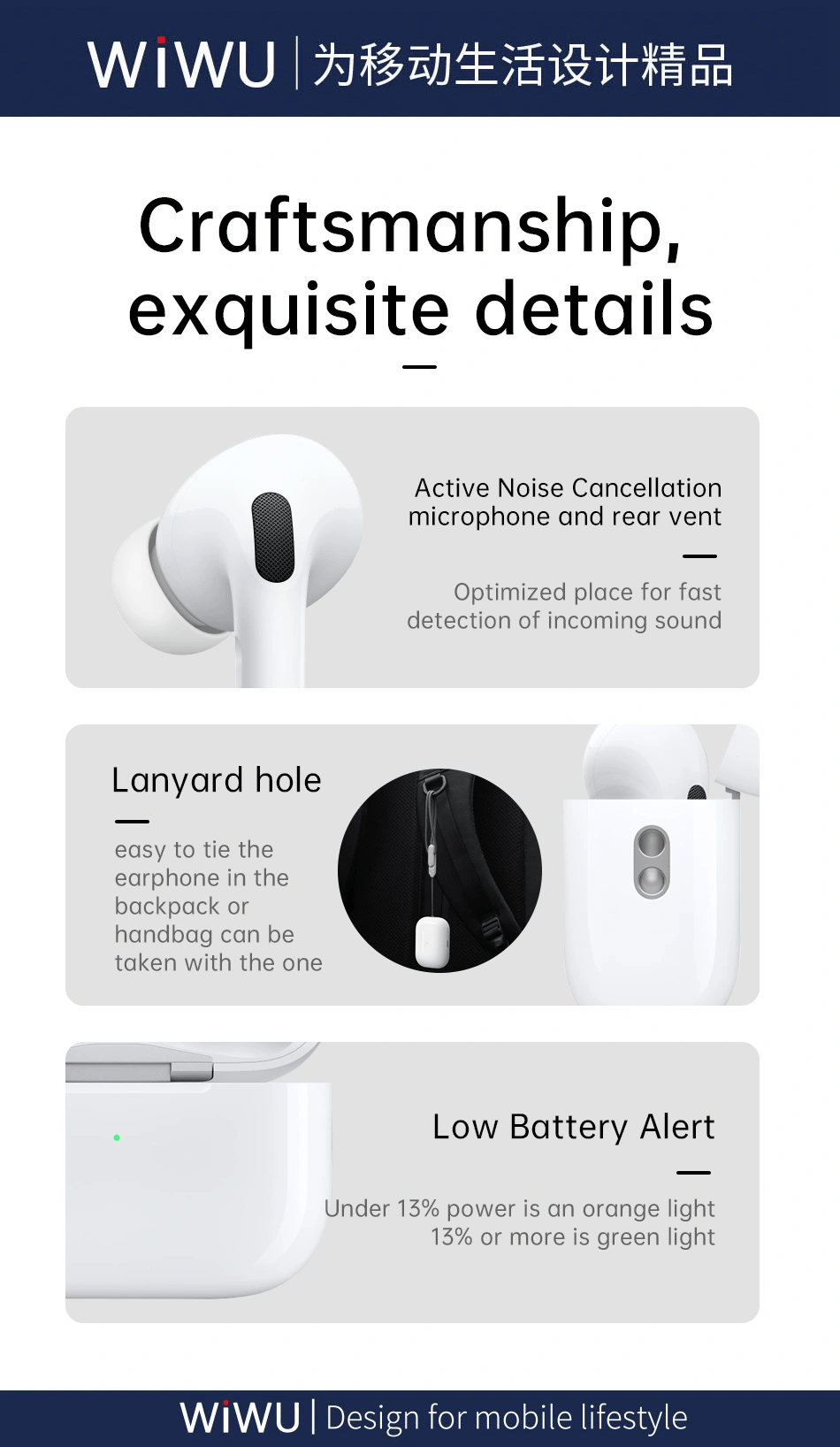 With Bluetooth 5.0 connectivity, these earphones ensure a fast and stable connection to your devices. Moreover, you can enjoy seamless music and calls without interruption. Additionally, the low-latency feature enhances your experience during gaming or video watching. Which ensure that audio syncs perfectly with visuals. Particularly, the WiWU Airbuds Pro 2 also come equipped with advanced noise cancellation technology. Especially, this feature effectively blocks out background noise. Also allow you to focus on your music, calls, or tasks. Whether you’re in a busy office or commuting, you can enjoy clear and uninterrupted sound.