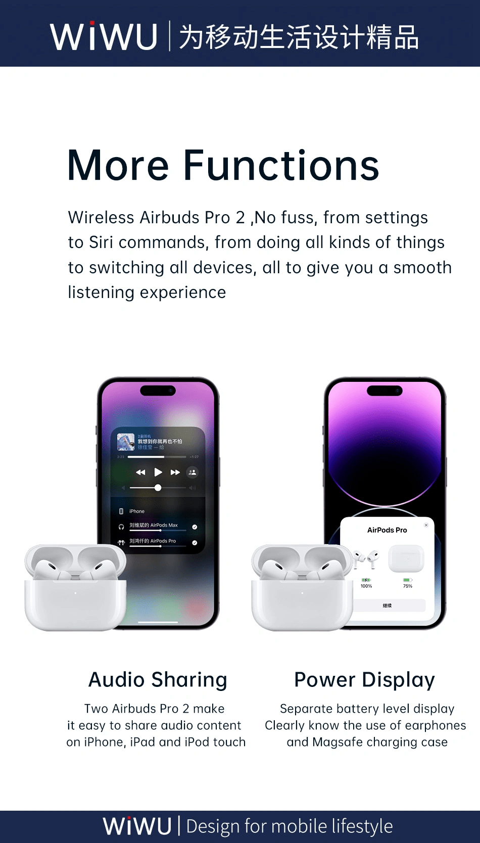 The WiWU Airbuds Pro 2 (USB-C) Wireless Bluetooth In-Ear Earphone delivers high-quality sound in a sleek, modern design. In addition, these earphones are built for those who value both style and functionality. Which provides an immersive audio experience while being comfortable to wear for long hours.